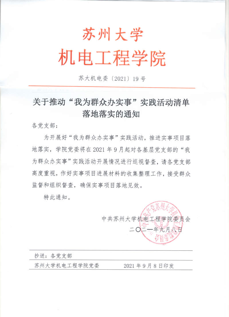 机电工程学院关于推动“我为群众办实事”实践活动清单落地落实的通知