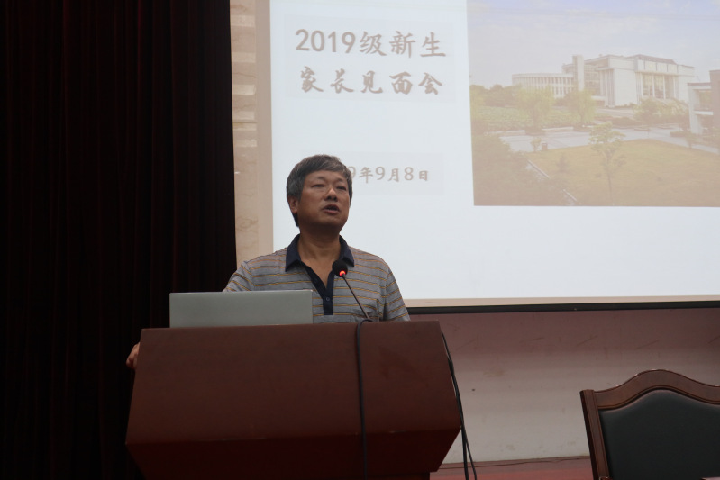 大会伊始,家长仍陆续赶来,顾正磊老师对各位家长拨冗出席此次会议表示感谢。随后,副院长陈在良教授结合PPT从各个方面向家长们进行相关情况的通报,他用精简、明确的语言、表格讲述机电工程学院的基本信息、国际交流项目、政府资助国家优惠政策,主要介绍机电工程学院就业情况及前景、人才培养计划、大学生学习规划的建议,副院长还用一张张奖状和表格向家长们展示学院人才培养效果,用一份份数据报告提高家长们对专业的认知。