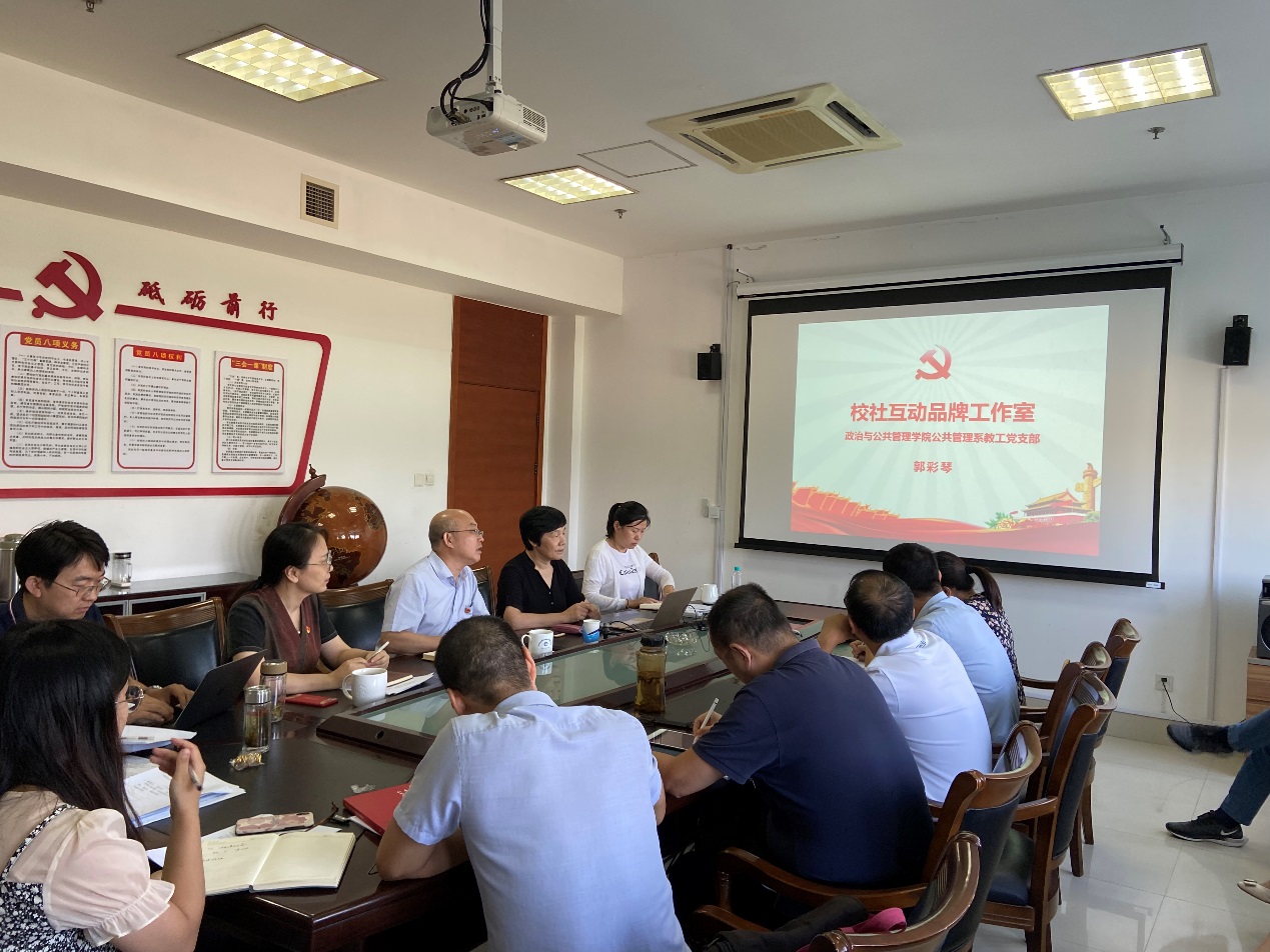 郭彩琴教授分享了政治与公共管理学院公共管理系党支部书记 “校社互动品牌” 工作室的培育和创建工作,结合生动形象的案例,详细介绍了政治与公共管理学院将党支部书记品牌工作室建设作为基层党建工作的重要内容,通过以政治建设为统领,推进党支部标准化建设;强化阵地建设,凝心聚力谋发展;以党建为引领,落实立德树人使命;深化“互动效应”,彰显党建品牌示范效应。