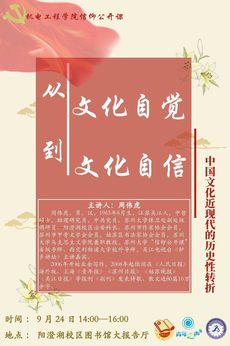 (海报)机电工程学院信仰公开课——从文化自觉到文化自信