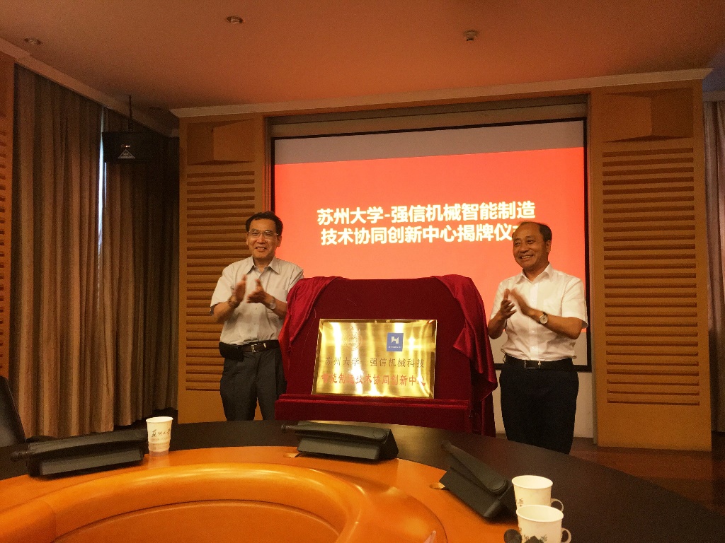 2019年6月12日“苏州大学—强信机械科技智能制造技术协同创新中心”签约仪式在苏州大学举行。强信机械科技(莱州)有限公司是一家上市企业,是全球最具规模的缝制设备配件生产商之一,其缝纫机刀类产品国内市场占有率超过90%。