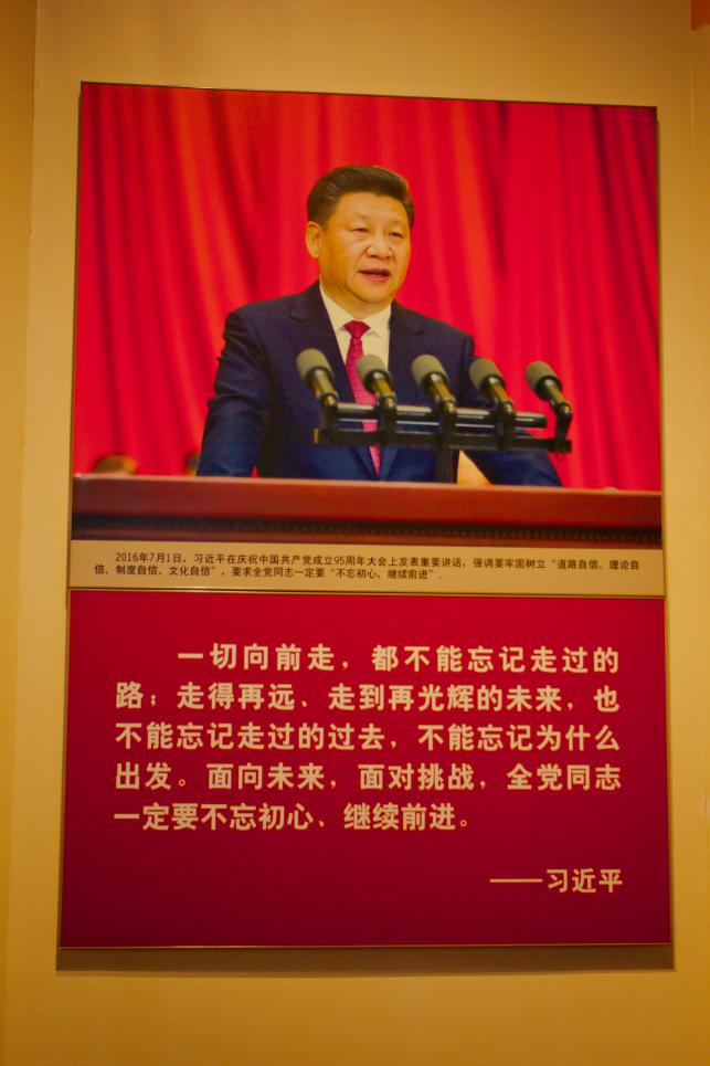 鲜红的党旗像一团火焰,是那样的神圣和高尚,让人发自内心地崇敬和激动。90多年来,中国共产党团结带领人民取得了举世瞩目的伟大成就,馆内的历史画卷让人感悟中国共产党的光辉历史。在这里的每一位参观者都不由地放慢脚步,眼眸中饱含着追思和敬仰,用心去体会、品味一件件展品中铭刻的光荣与荣耀。