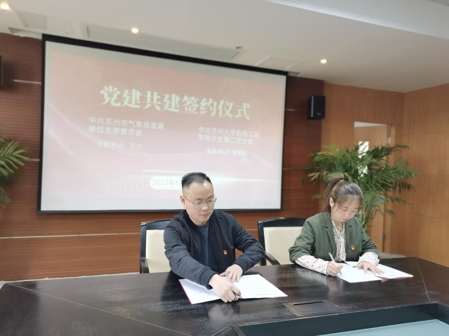 随后,苏州市气象局党委与机电工程学院学生第二党支部签订结对共建合作协议。未来,双方将在志愿服务、应用技术研究等方面积极开展战略合作,共同打造“党建+育人”模式。
