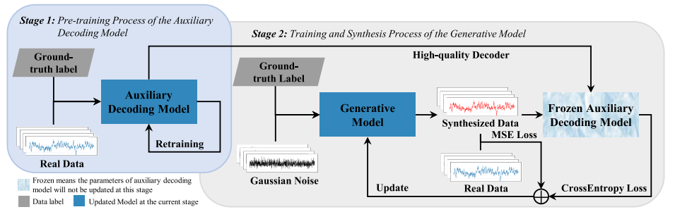 【背景意义】脑机接口技术能够将脑电信号转化为机器可以理解的指令或控制信号,这为实现神经控制的外部设备,如假肢、轮椅和人工智能交互,提供了巨大的潜力。然而,脑电解码的准确性和稳定性依赖于大量高分辨率的数据,脑电数据的采集实验存在过程繁琐、易受干扰、对被试和环境要求高等问题,因此很难获取足够的可用数据。人工数据生成是解决上述问题的途径之一,但脑电信号的非平稳性、时变敏感、个体差异性等特性致使人工数据生成成为脑机接口领域具有挑战性的研究课题。