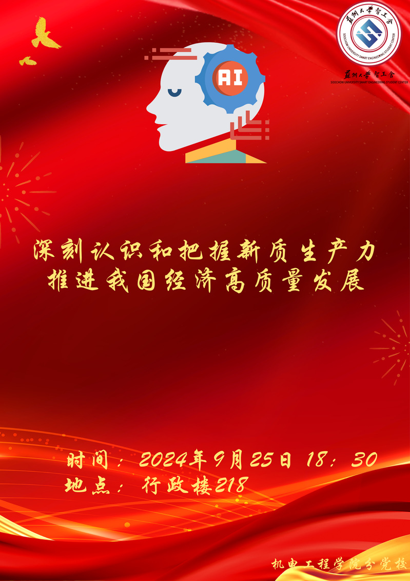 智工先锋之机电工程学院预备党员培训主题讲座-《深刻认识和把握新质生产力,推进我国经济高质量发展》
