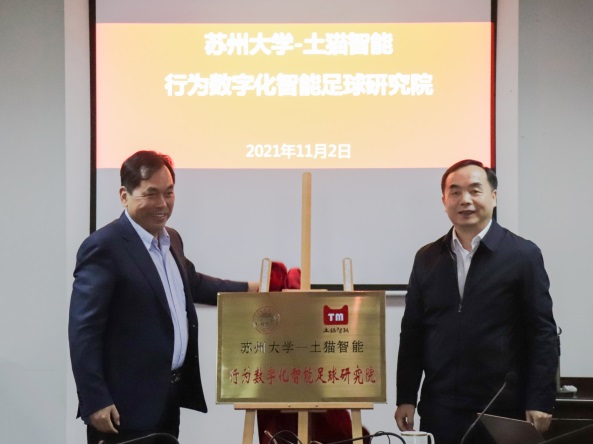 随后,陈涛副院长介绍本次成立的我院首批“五百万”校级研究院的基本建设情况——苏州大学和土猫(苏州)智能科技有限公司成立行为数字化智能足球研究院,苏州大学和昆山玛冀电子有限公司成立磁性芯片智能制造研究院。除了两大研究院的目标、研究内容、组织架构及保障措施外,陈涛副院长还介绍了研究院将在2021年苏州大学第六次战略研讨会会议精神以及我院“十四五”规划指导下,把握科技创新范式转变机遇,从产业出发寻找促进产业发展的新技术,做好基础研究或应用技术研究,重点发展产学研合作和军民融合,进一步深化新工科交叉融合、协同发展道路。