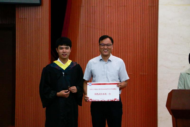 机电工程学院副院长王传洋代表学院与毕业班互赠纪念品。