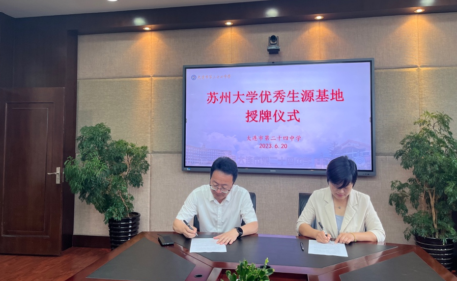 大连市第二十四中学是辽宁省重点中学、辽宁省示范高中,学生在德、智、体、美、劳等方面全面发展,在高考、竞赛、艺术、体育、科技等各领域均取得优异成绩,领军于大连市普通高中教育。本次签约挂牌工作进一步强化了苏州大学与大连市第二十四中学在人才培养和生源输送上的衔接与联动,有力推动我校招生工作建设,吸引更多优质生源,为社会培养更多人才。