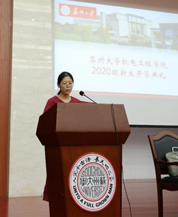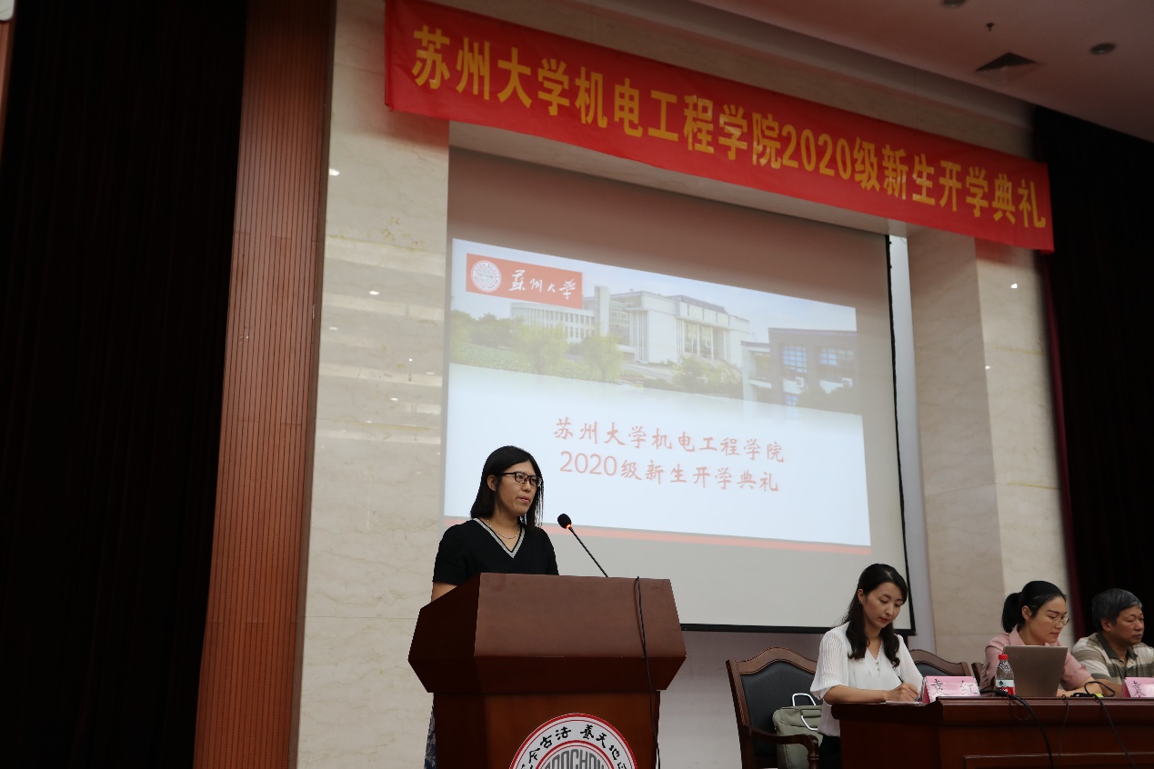 9月15日下午14:00,苏州大学机电工程学院2020级新生开学典礼暨大学第一课在阳澄湖校区图书馆大报告厅举行。机电工程学院全体院领导、系主任、教师代表、老生代表、新生辅导员、班主任及2020级全体学生参加开学典礼。典礼由学院党委副书记、副院长袁红主持。