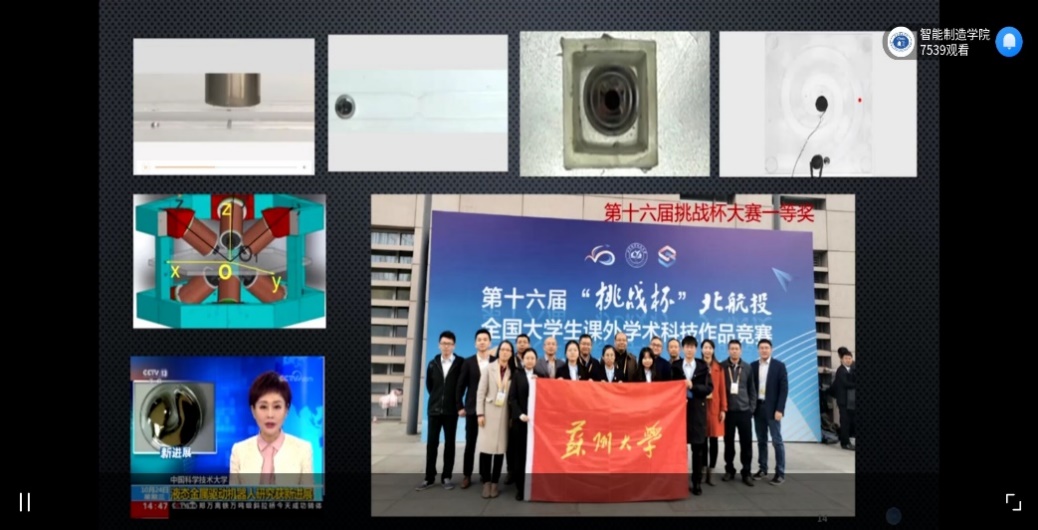 与此同时,我校很多同学也实时收看了此次讲座,其中更包括许多刚入学的新生。孙教授在讲座中展示出了一个生动有趣的科学世界与许多先进的研究成果,开拓了同学们的思维与视野,极大地激起了同学们的科研兴趣,让同学们,尤其新生,认识到科研并不是呆板而无生气的,科研成果总是需要研究人员巧妙而又灵活的构思;也认识到智能机器人领域的巨大潜力,以及其在社会各个方面的巨大作用,帮助同学们明确了自己的未来发展方向。