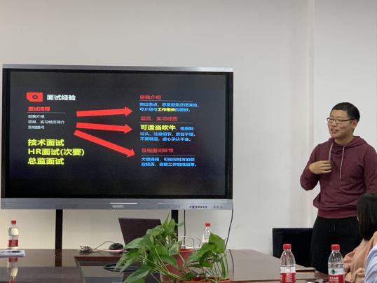 文风学姐在本次活动中分享了她个人出国留学的经历以及其读博期间的经验体会,她希望通过这次经验交流会能为那些有出国意愿的同学提供一些帮助。文凤学姐认为,不论是读博科研还是工作生活,都要保持一颗乐观的心态,没有趟不过的河,没有跨不过的坎。刘仕琦学长分享了他个人的求职经历,对于选择去大公司发展还是选择去小公司打拼,他给出了自己独到的看法。刘仕琦学长认为,求职本身其实是一种双向选择的过程,你选择了公司,公司也选择了你,遇到想去的企业或者公司就大胆去投简历,尽管就业形势越来越严峻,但是“广撒网”才能为自己争取更多的机会。夏月冬学长分享了他个人的工作经历,就选择技术岗还是管理岗这个问题给出了自己的见解,他认为不同的岗位的晋升是不同的,就以管理岗为例大多是与人打交道要多一些,一般是从主管到经理;技术岗多与项目打交道多一些,走的是专家路线。夏月冬学长认为,不论处于何种岗位,何种工作,保持一种终身学习的态度才能不断成长、不断进步。