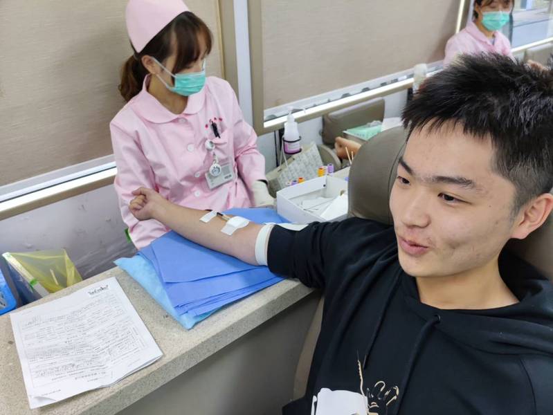 然而也并非所有人都能献血,一些同学因为身体原因只能遗憾地目送舍友登上献血大巴。在献血大巴上,同学们依照医生的嘱咐放松坐下,在针头扎入时也没有表现出恐惧,既短暂又漫长的十分钟里,同学们一边捏海绵球放松,一边喝热糖水暖和身子,终于坚持了下来。