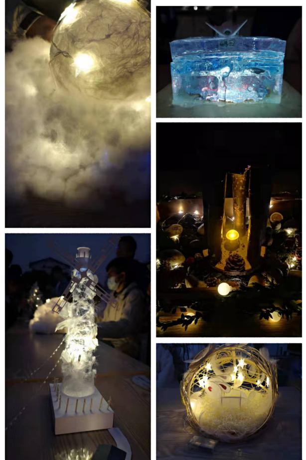 下午5点,灯火集市早早地在食堂南门口“上新”了。各个参赛队伍带着自己精美的灯光作品来到食堂南门口摆摊展览,过往同学无不停下脚步,在集市摊位面前驻足欣赏丰富多彩的参赛作品。随后,观众们依照个人喜爱度进行了不记名投票。院社联指导教师刘婷玉参观了温馨的灯光集市,并与部分参赛队伍合影留念,向各位选手给予了由衷的鼓励。