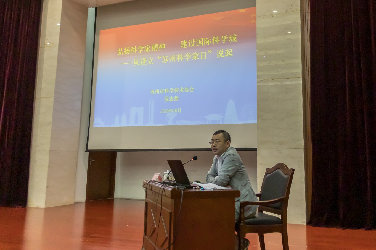 倪主席强调苏州自古以来就是人才之乡,古代苏州盛产进士,当代苏州盛产院士。从古至今在苏州这片土地上涌现了很多的天文学家,数学家,农学家……借此,他提出了苏州精神。苏州精神和勇于担当,勇于创新的科学家高度吻合,而其中的爱则是科学家精神的核心。在此,他举了赵忠尧先生在国家最危亡的时候千难万险回国做贡献并培养出两个获得诺贝尔奖的学生的故事,发人深省。