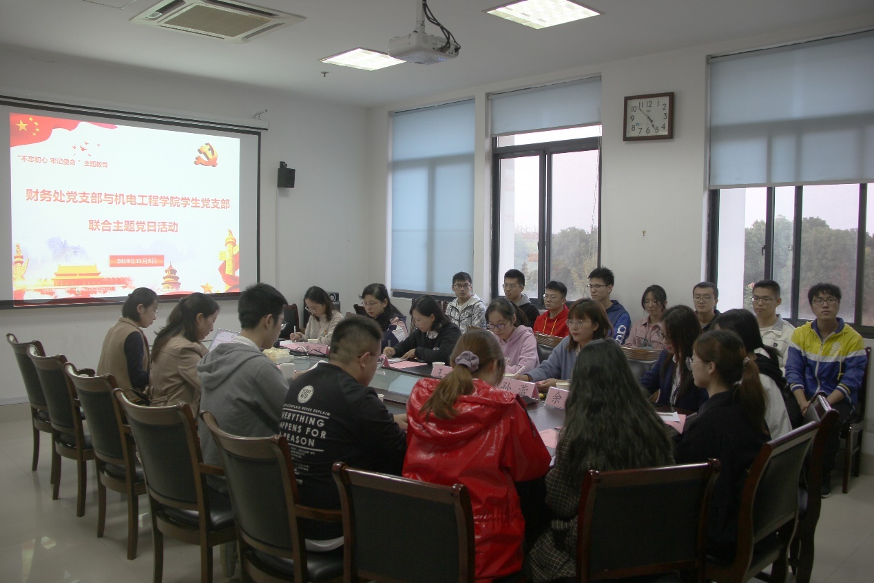 财务处党支部与机电工程学院本科生党支部围绕“不忘初心、牢记使命”主题开展座谈会。根据学生提出的阳澄湖校区水卡充值条件、科研报销等内容,财务处老师们认真进行了情况了解,并一一给予回应。座谈中,李洋等老师详细为大家介绍了同学们较为关心的财务信息,例如苏大财务处微信公众号的功能使用,利用线上如何办理相关财务业务等。