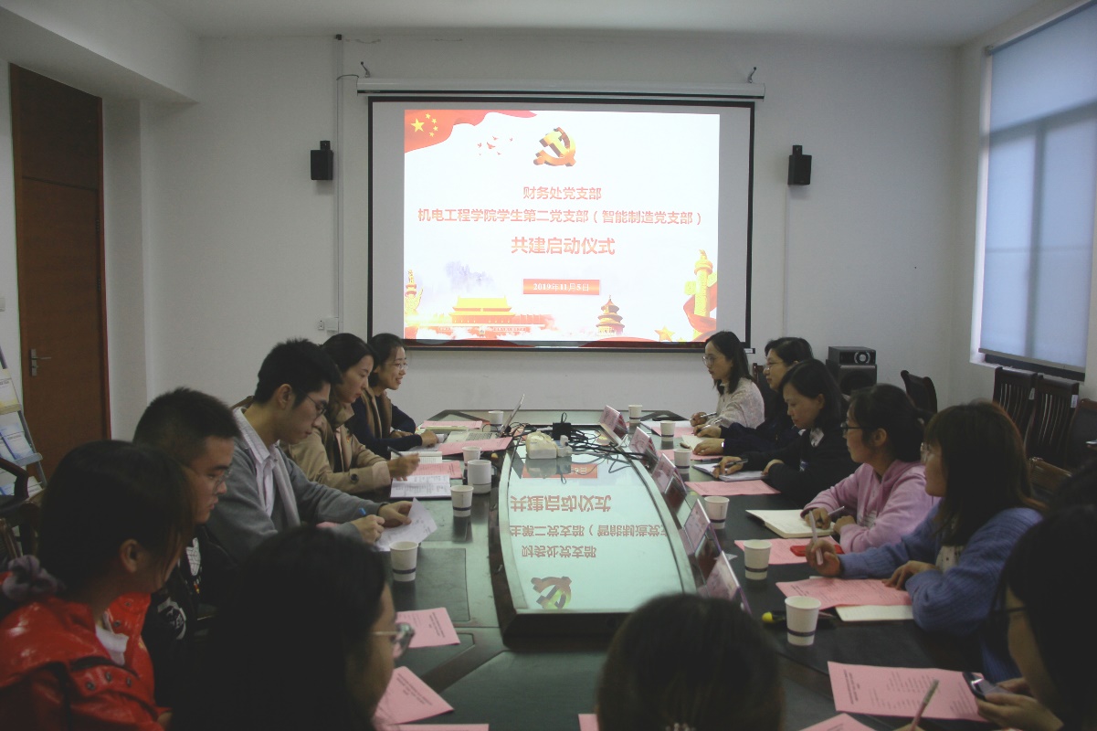 2019年11月5日下午,苏州大学财务处党支部与机电工程学院本科生第二党支部共建启动仪式暨“不忘初心、牢记使命”主题教育在阳澄湖校区行政楼218会议室顺利举行。财务处副处长朱彦,支部副书记王一乐,组织委员李洋,宣传委员孙蕾,纪检委员曹菡,机电工程学院党委副书记、副院长袁红,学工办主任顾正磊,团委副书记陈恺,2018级辅导员吕畅达,学生第二党支部全体党员,及本科生第一、第三党支部党员代表参加本次共建与党日活动。活动由袁红主持。
