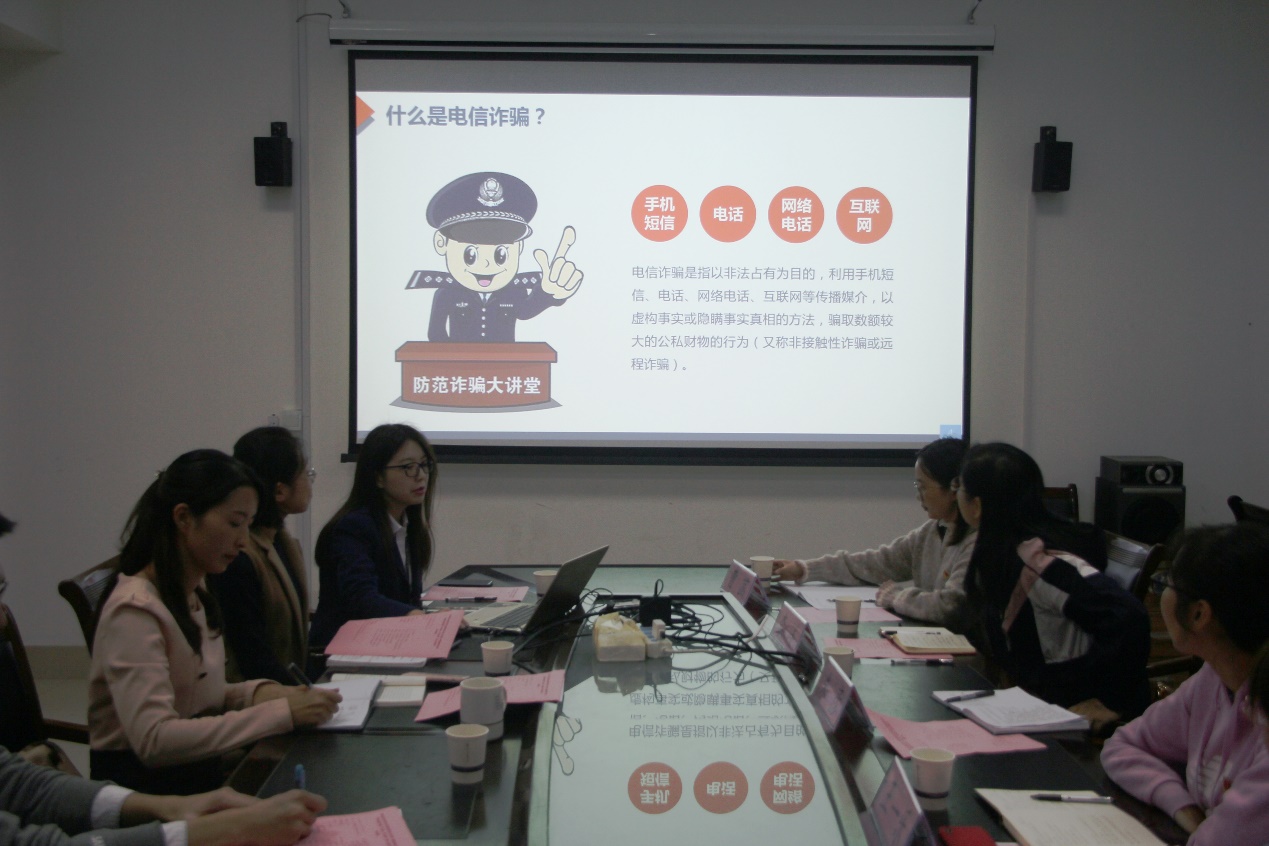 财务处党支部特邀交通银行苏州分行个人金融业务部余悦对在场全体党员开展《预防电信诈骗小知识》专题讲座。她从电信诈骗的概念、电信诈骗的形式、如何防范电信诈骗、以及电信诈骗后的补救措施等内容,提醒同学们要注意金融诈骗,保护好自身的财产和人身安全。
