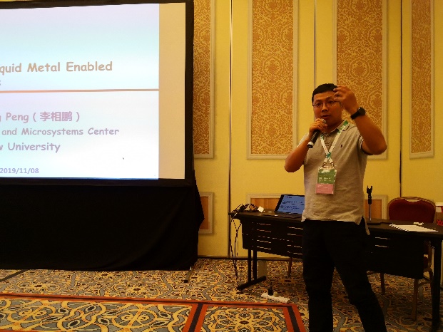李相鹏和杨浩老师受大会会务组委托,共同组织了“微操作与微机器人”主题论坛,邀请了国内外一线知名科研人员共同商讨相关领域发展,其中包括南开大学人工智能学院党委书记赵新教授、香港城市大学教授申亚京、清华大学副教授李翔等,各位专家做了精彩的报告,并开展了“华山论剑”,详细讨论了微操作与微机器人的研究发展,使与会人员受益匪浅。同时,李相鹏和杨浩老师也分别针对近期的研究工作做了报告,题目分别为“液态金属微机器人”与“生物细胞机械特性的测量方法”,并与参会人员进行了热烈讨论。孙荣川老师在“智能机器人与解剖结构交互作用”主题研讨会上对近期研究工作进行了口头演讲报告。迟文政老师对大会收录论文进行了海报展示,并与各国参观人员进行了交流与互动。