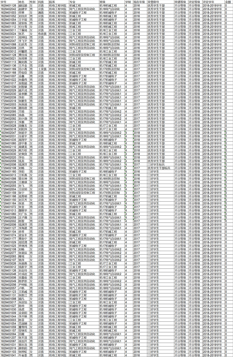附件:2018-2019学年机电工程学院三好学生、三好学生标兵、优秀学生干部、优秀学生干部标兵拟获奖名单.xls