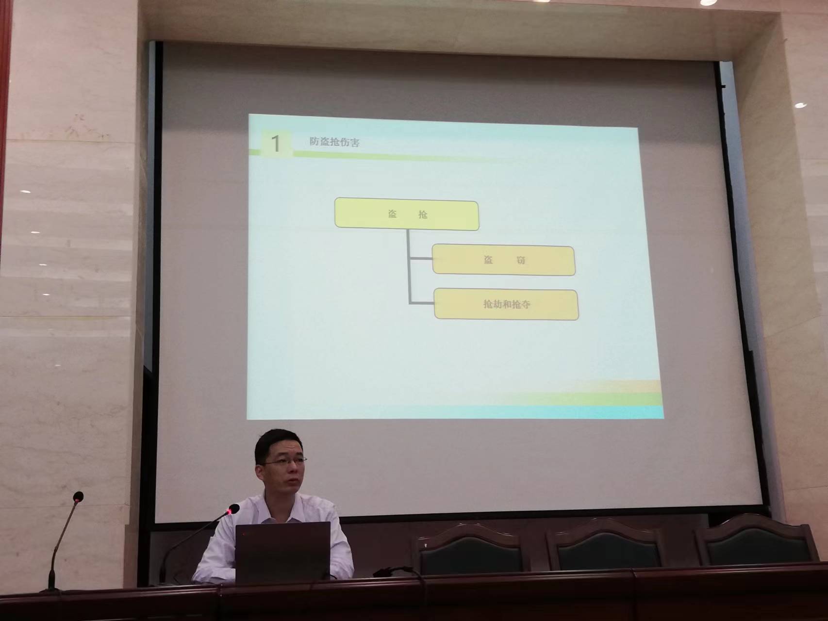 治安科科长黄晓阳老师给新生们做了一次校园安全方面的教育讲座。对防火、防窃、预防意外伤害、特别是对校园内经常发生的交通意外伤害进行了详细的剖析,愿新生们平安度过校园生活。