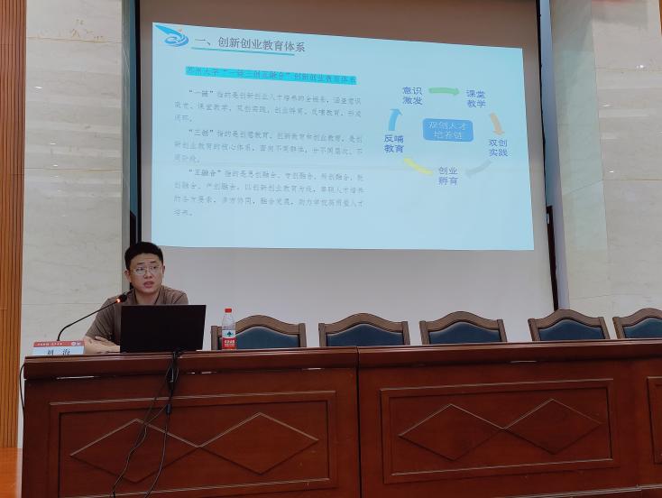 在科研双选会环节,刘海详细介绍了创新创业大赛的政策、备赛的注意事项和好项目的五要素。他表示,机电工程学院在历年的“三大赛”中均取得了优异的成绩,这离不开学院良好的创新创业生态,科技竞赛的宗旨在于激发学生浓厚的科研兴趣,希望新生从此刻埋下科创报国的种子。