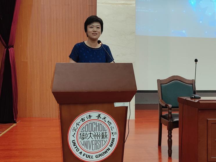 解笑代表学院对与会嘉宾的到来表示欢迎,她指出,学院以国家科技创新背景和文化培育为导向,依托科技文化活动来激发大学生的创新意识、增强创新实践能力、充分展现大学生的艺术才华和创新能力。今年的科技文化节将开展开展桥模、灯光设计大赛、智能科普等特色活动,科创面对面、企业面对面等机电青年大讲堂系列活动和组织机器人大赛、智能小车竞赛、蓝桥杯等一系列科技竞赛的选拔,希望同学们能够积极参与其中,自由探索,勇于开拓新的方向,充满信心地去迎接新时代给予机电学子的使命和挑战。