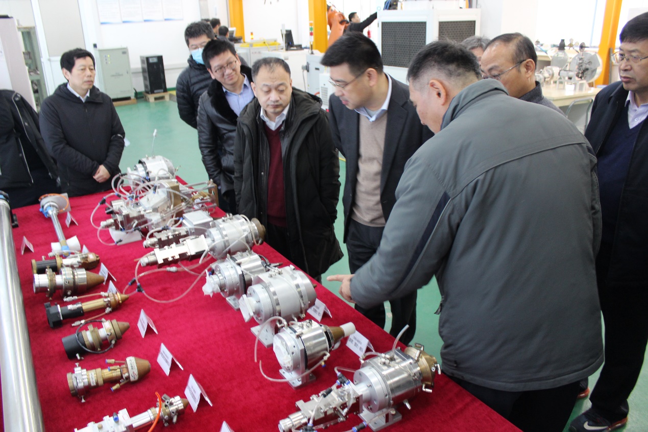 石世宏汇报了高效高精度多功能激光增材制造系列喷头核心部件、工艺及其控制集成等研发任务的完成情况。随后专家组到激光制造技术研究所实验室,观看了项目成果演示,现场考察了已商业化的系列金属3D打印核心喷头器件,对项目给予了高度评价。
