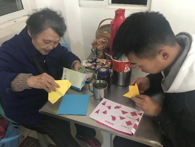 孟鑫:今天去了观前敬老院,和那里的老人度过了一段愉快的时光。我们和老人们打扑克牌,下期,教他们折纸。和我打牌的老奶奶说院里少有人打牌,平时只能自己玩玩,也没有玩过四个人一起打的模式。我们边打边教她一些规则,奶奶笑着和我们说,真是活到老学到老,什么时候都要学习。还有折纸的奶奶,十分热情健谈,和我们的志愿者聊了许多生活中的事,还唱戏给我们听。我感觉这里的老人们都十分乐观有趣,希望下次还可以来看望他们,和他们一起玩。