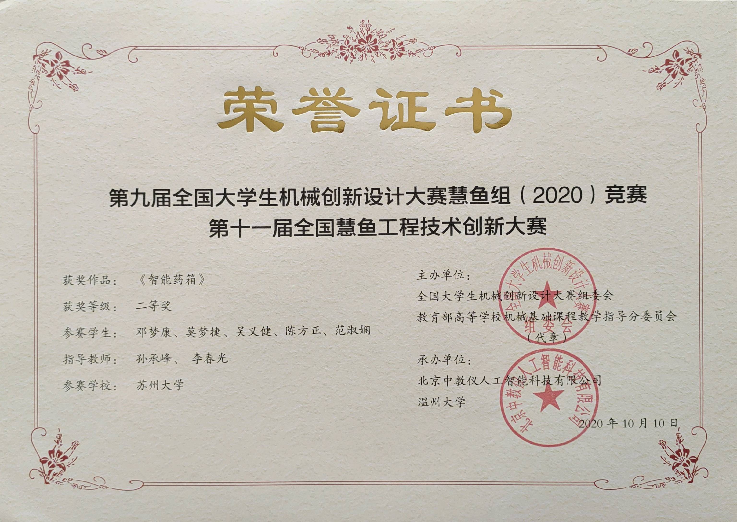 在第九届全国大学生机械创新设计大赛慧鱼组竞赛暨慧鱼工程技术创新大赛中,我院钟博文、孙承峰、李春光三位老师指导的两支队伍均获得省赛二等奖的好成绩。