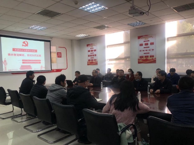 随后,研究中心党支部与加工平台党支部党员共同交流,开展了学习心得分享座谈会,座谈会由支部书记杨浩同志主持。双方就微纳制造工艺、微纳制造设备、双方科研方向等进行了深入的沟通和交流,并达成了下一步院校合作建设平台的共识。