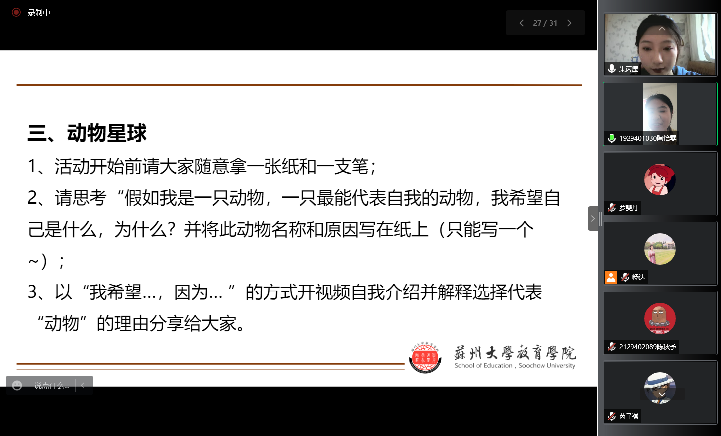 为进一步做好同学们在疫情期间居家学习、生活的心理健康教育工作,提高心理免疫力,打破疫情焦躁情绪,4月27日下午两点,我院邀请教育学院研究生通过线上方式,开展“凝心聚力,携手抗‘疫’”团体心理辅导活动。