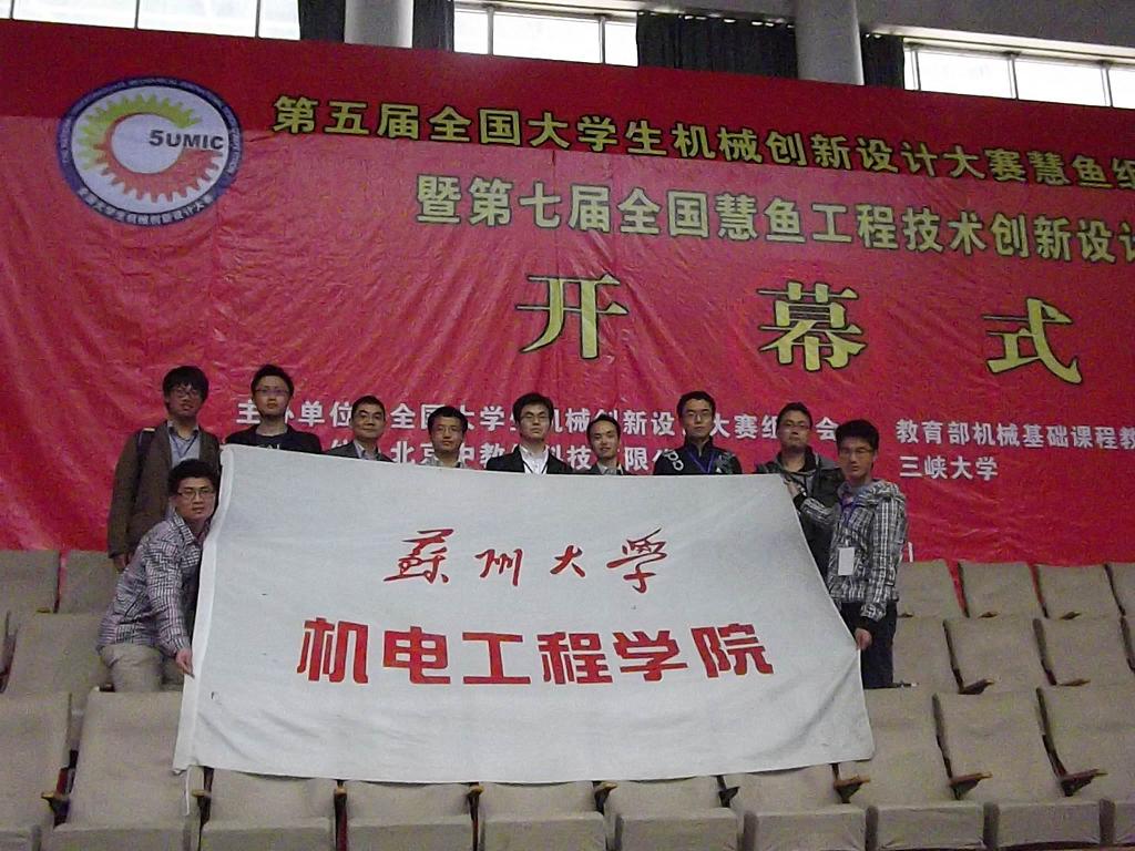 4月13至16日,第五届全国大学生机械创新设计大赛慧鱼组(2012)竞赛暨第七届全国慧鱼工程技术创新设计大赛在三峡大学(宜昌)举行。经过为期四天的激烈角逐,我院师生再创佳绩,“智能化集成家用住宅”和“扑克牌自动洗牌机”两组参赛作品均获得二等奖的优异成绩,“多功能墙壁装饰美化装置”获得了三等奖。