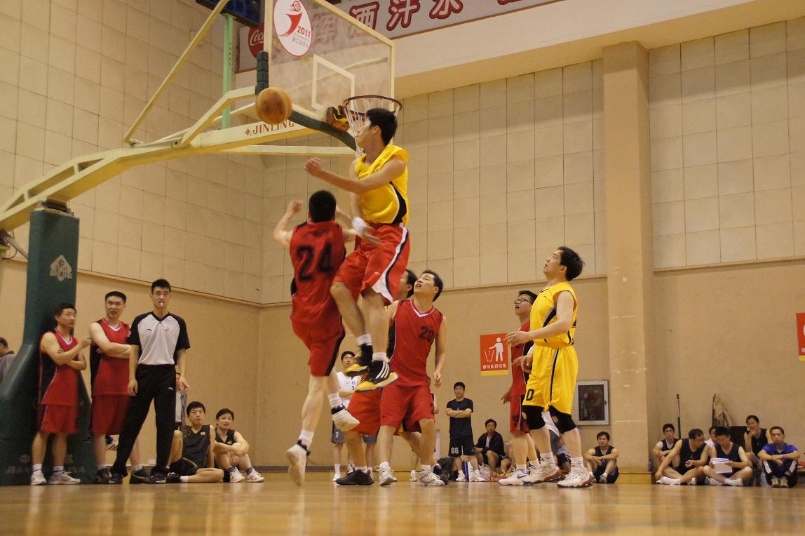 上午八点,比赛正式拉开序幕。比赛刚开始便陷入混战,馆内接球、传球、上篮、盖帽,眼花缭乱;呐喊声、喝彩声,此起彼伏。作为身体对抗较强的运动,让人们在热血沸腾的时候也为那些奔跑的教授们捏了把汗。而投篮得手后对手之间亲切的拥抱又让人倍感温馨。