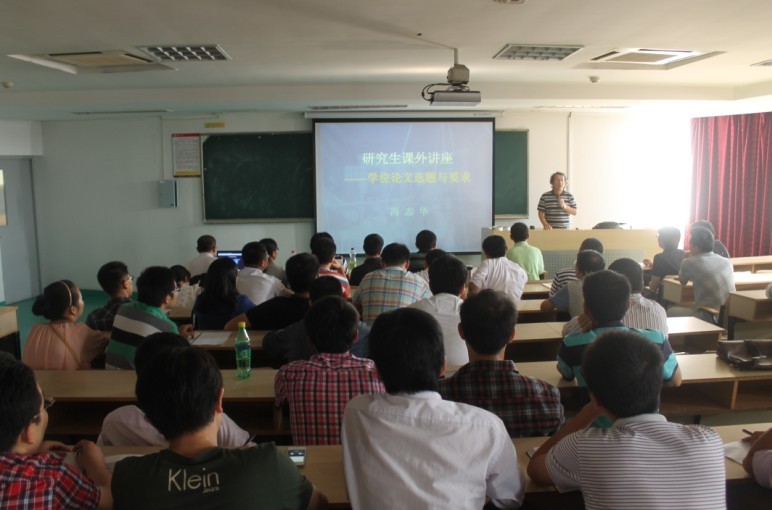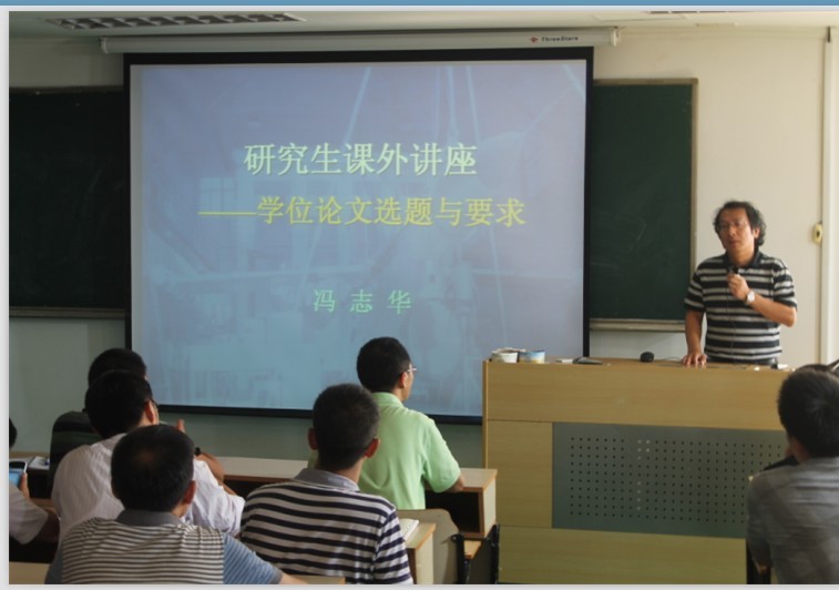 10月13日下午,机电工程学院副院长冯志华教授对本院研究生进行了一次课外学术讲座。讲座主要讲述了学位论文选题及要求这一与大家密切关心的问题。他从学术和态度上对大家提出了要求并给与了指导,使得大家对研究生科研方向、论文选题和写作有了更深刻的思考和更明确的想法。