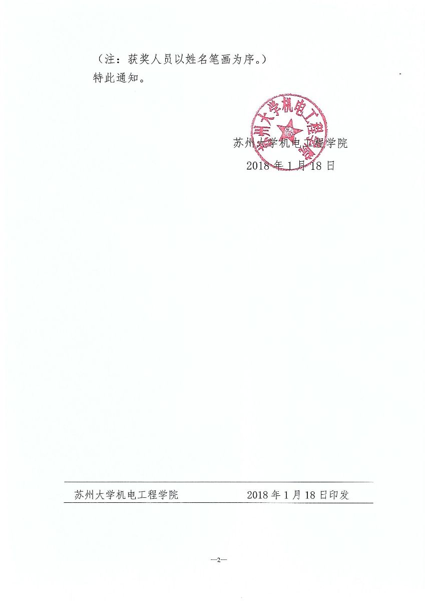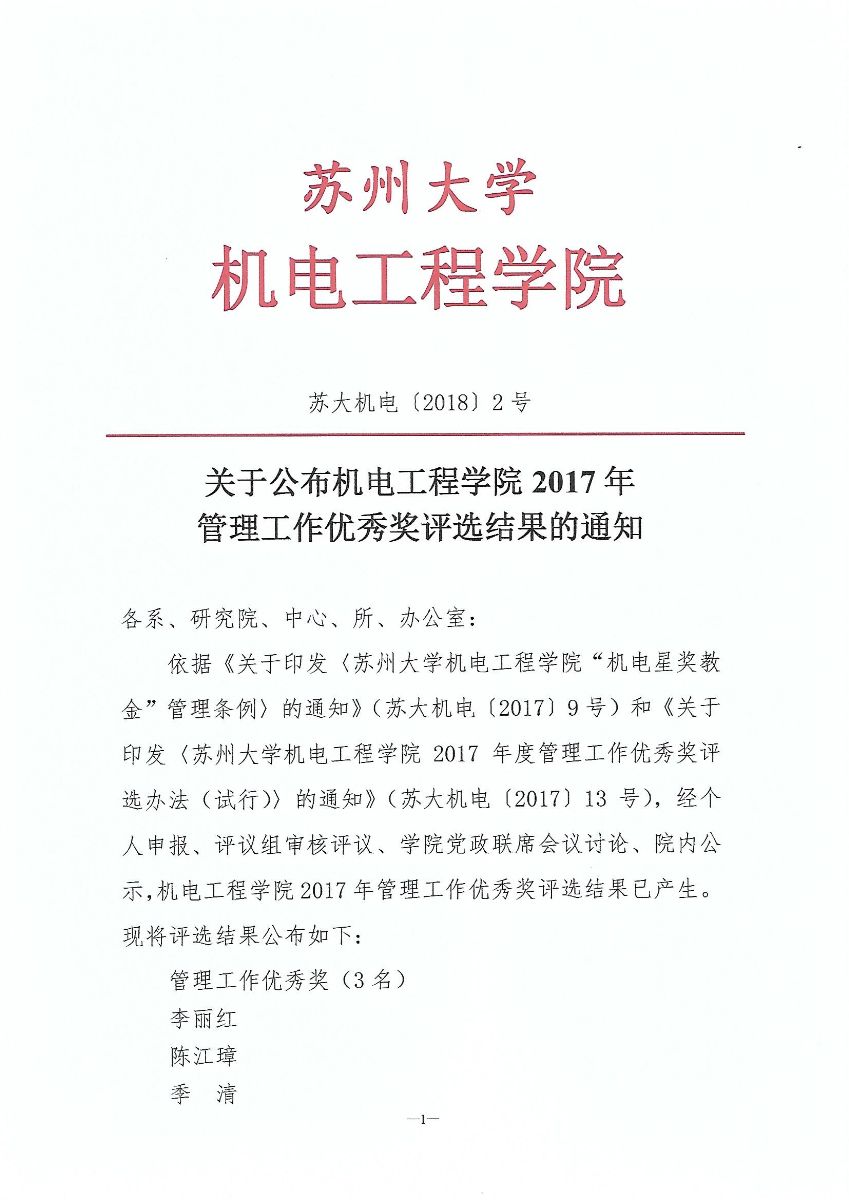 关于公布机电工程学院2017年管理工作优秀奖评选结果的通知