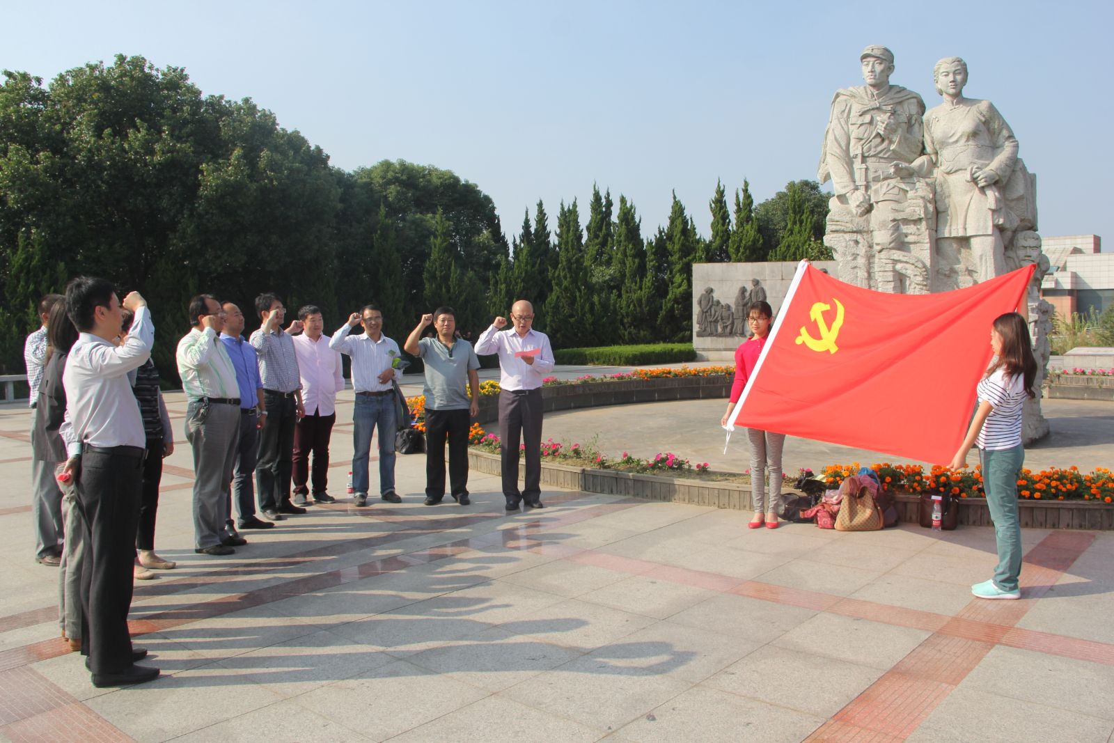 随着“三严三实”专题教育的不断深入,为更好地发挥先进典型的示范引领作用,2015年10月21日下午,机电工程学院党委一行赴沙家浜红色基地开展参观学习活动。学院党委书记刘鲁庆同志带队,全体处级领导干部和党支部书记共同参与,重温入党誓词,追寻先烈足迹,接受革命教育洗礼。