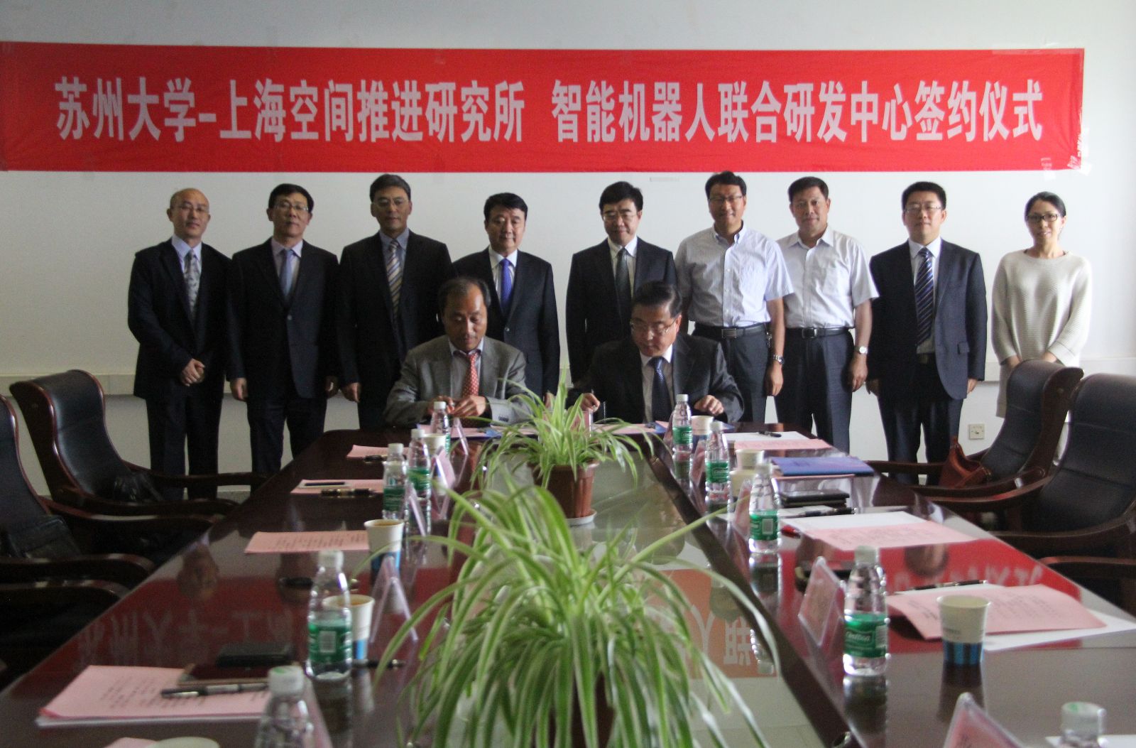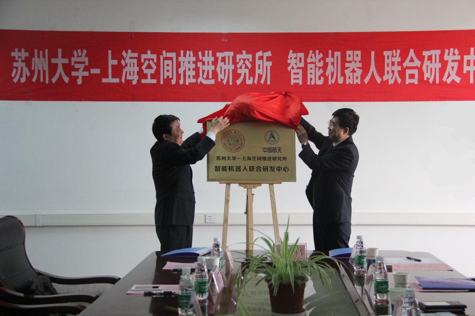 航天推进技术研究院、上海空间推进研究所、航天投资控股有限公司、上海航天动力科技工程有限公司、苏州大学党委办公室、科学技术与产业部、机电工程学院和机器人与微系统研究中心有关人员参加了签约揭牌仪式。