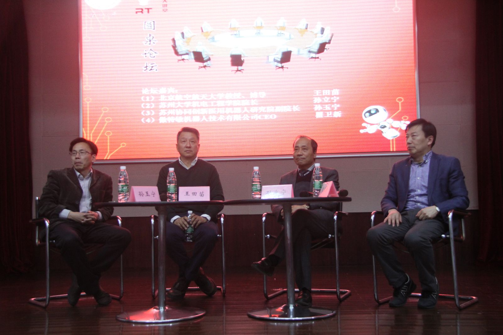 2017年3月17日晚,由苏州大学机电工程学院、中关村融智特种机器人产业联盟联合开展的“机器人大讲堂·苏州大学站”活动在苏州大学本部学术报告厅隆重举行。北航机器人研究所名誉所长王田苗,苏州协同创新医用机器人研究院副院长孙玉宁,沃斯机器人科技(苏州)有限公司副总经理瞿卫新,中关村融智特种机器人产业联盟副秘书长王伟,苏州大学学生工作部(处)处长孙庆民,苏州大学机电工程学院院长、国家杰青获得者孙立宁,苏州大学机电工程学院党委书记刘鲁庆,苏州大学计算机科学与技术学院副书记沈云彩、苏州大学物理与光电·能源学部副书记沙丹丹、苏州大学电子信息学院副书记黄远丰等专家老师应邀出席大讲堂活动。