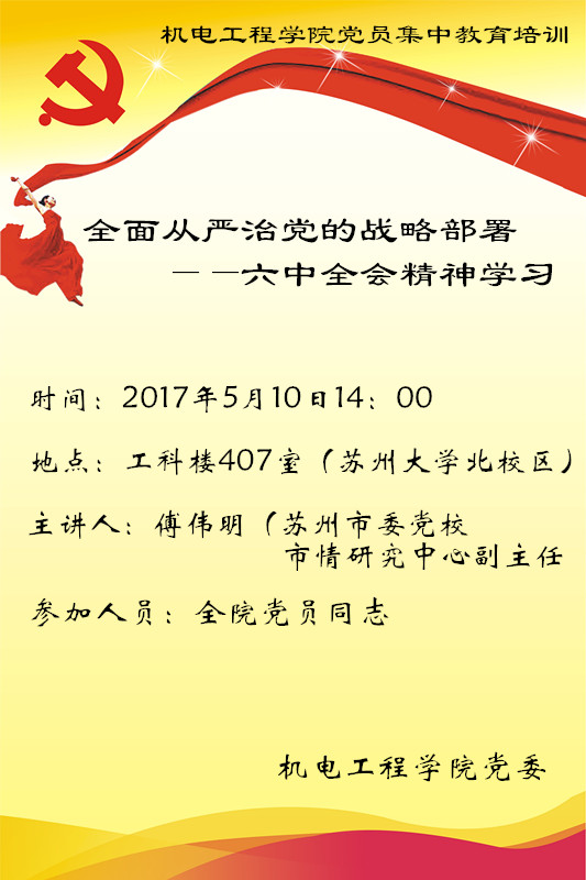 机电工程学院党委开展党员集中培训教育:全面从严治党的战略部署——六中全会精神学习