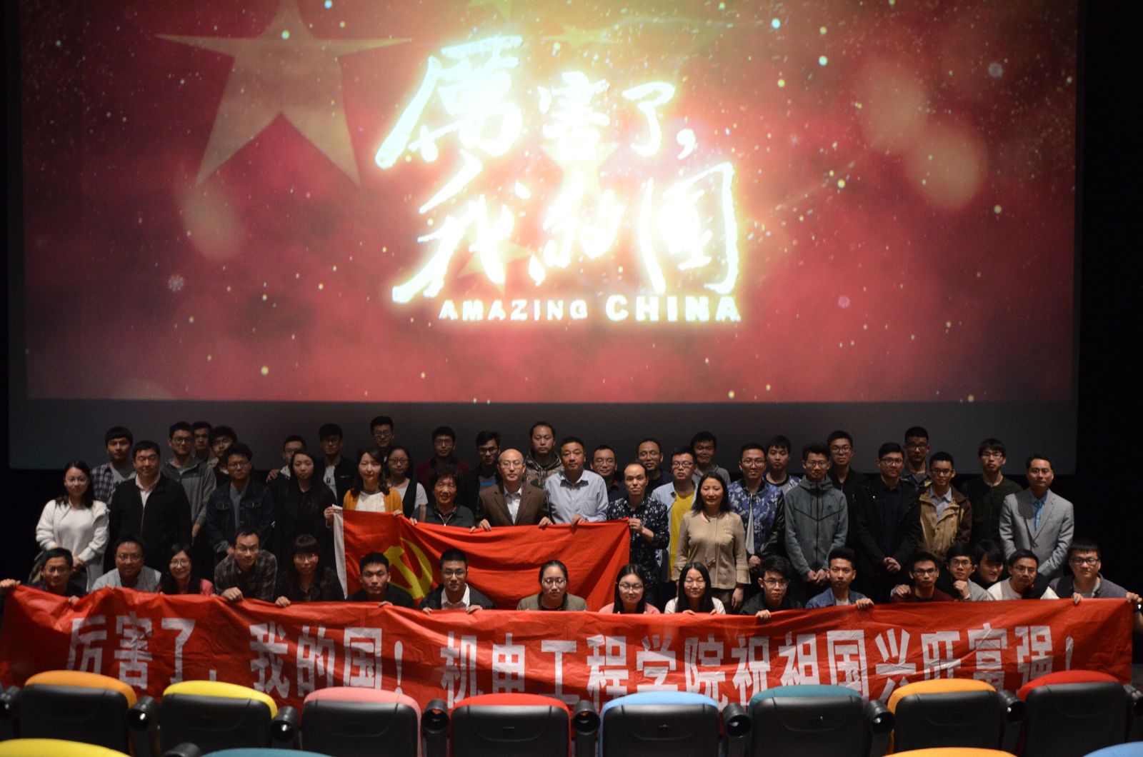 观看的电影是大型纪录片《厉害了 我的国》。该部影片以习近平新时代中国特色社会主义思想为指引,从经济、政治、社会、文化、生态等各方面,全面展示了党的十八大以来在创新、协调、绿色、开放、共享的新发展理念下中国取得的历史性成就、历史性变革,充分彰显了中华民族开拓进取、努力拼搏、锲而不舍的奋斗精神。当一幕幕壮观恢弘的大规模航拍镜头从眼前掠过,祖国的壮美山河、卓越成就所带来的震撼与自豪感,扑面而来。观影过程中,党员和入党积极分子无不被祖国五年来发展取得的巨大成就而深深震撼,影院里不时发出阵阵惊叹声。