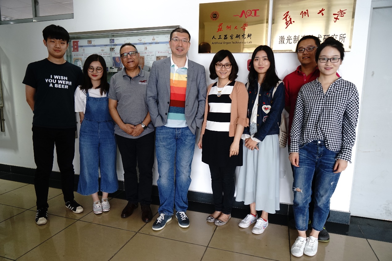 2018年5月7日至5月11日,国家自然科学基金委员会(NSFC)与英国皇家学会(RS)联合支持的中英合作交流项目“多维度混合型体外循环模拟实验系统研发”启动会在苏州大学举行。该项目支持英国布鲁内尔大学生物工程研究院和苏州大学机电学院人工器官研究所的交流互访,项目期2年。英方项目负责人,布鲁内尔大学生物医学工程学科带头人Ashraf Khir教授和该学科助理教授,项目骨干成员Xinli Du博士与苏州大学徐博翎教授带头的项目组团队进行了深入的学术交流和项目规划。