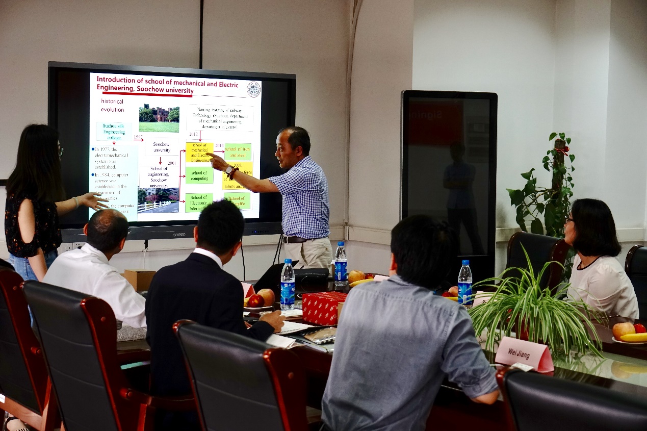 2018年5月18日下午,日本群马大学理工学部Seiji Hashimoto教授与Nobuyuki Kurita副教授及扬州大学能源与动力工程学院蒋伟副教授一行访问苏州大学机电学院,与我院签订了学术交流、学生交换合作协议。院长孙立宁教授、人工器官研究所副所长徐博翎教授出席了签约仪式。