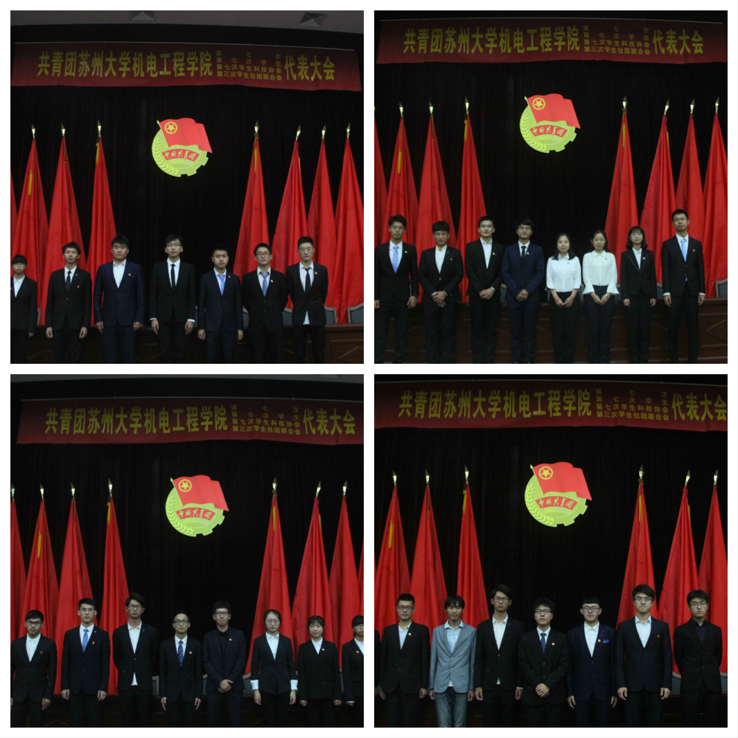 会议审议通过了相关工作报告并选举产生了由9名同志组成的共青团苏州大学机电工程学院第七届委员会,8名同志组成的共青团苏州大学机电工程学院学生会第七届委员会、8名同志组成的共青团苏州大学机电工程学院科协第七届委员会、7名同志组成的共青团苏州大学机电工程学院社联第七届委员会。