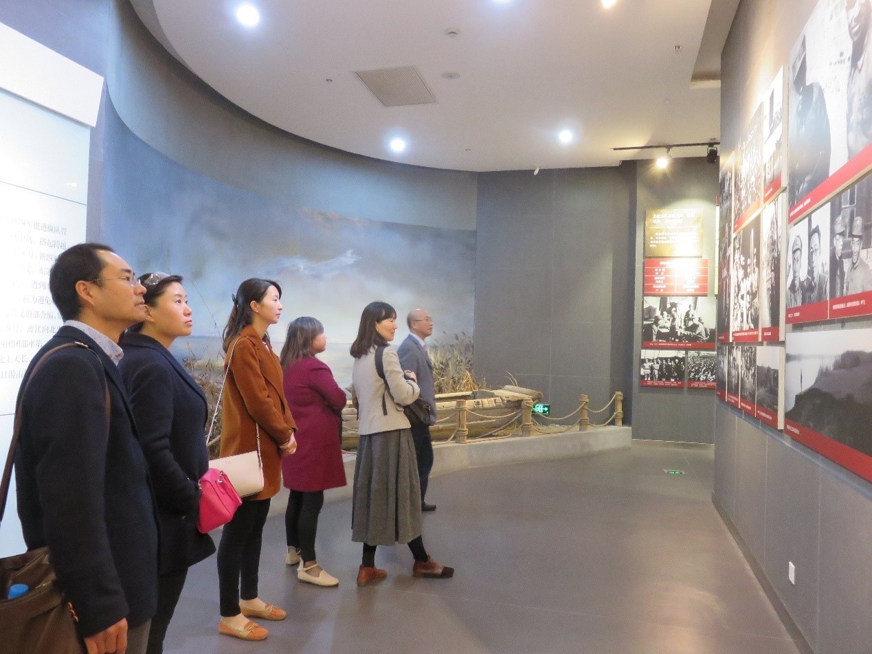 2018年11月14日,机电工程学院党委委员、理论学习中心组成员及各党支部书记代表在党委书记刘鲁庆的组织和带领下,来到江苏泰兴参观新四军黄桥战役纪念馆,缅怀创造历史伟业的人民英雄,追忆那段交织着血与火的历史。