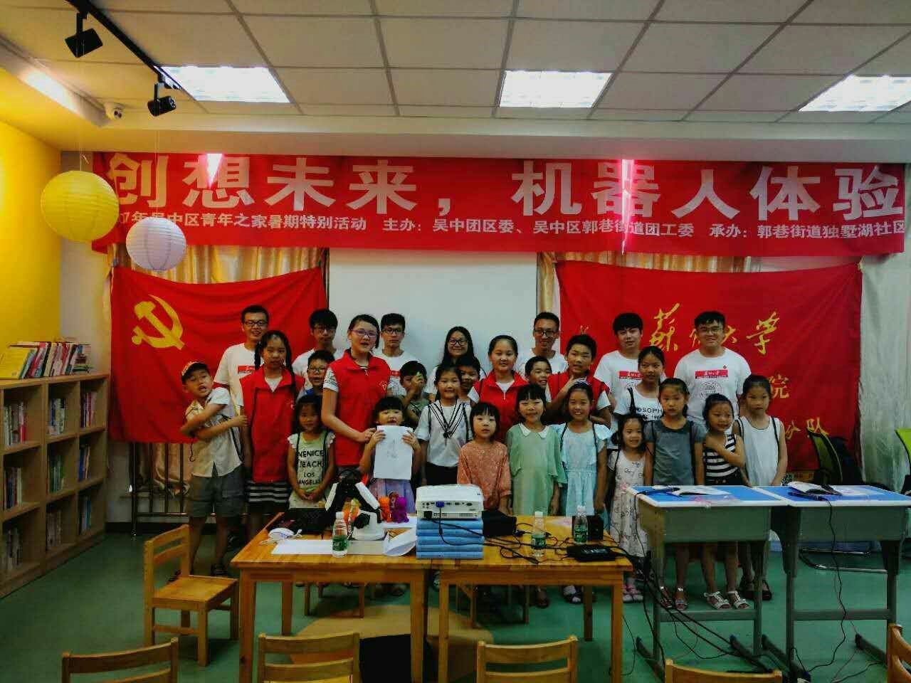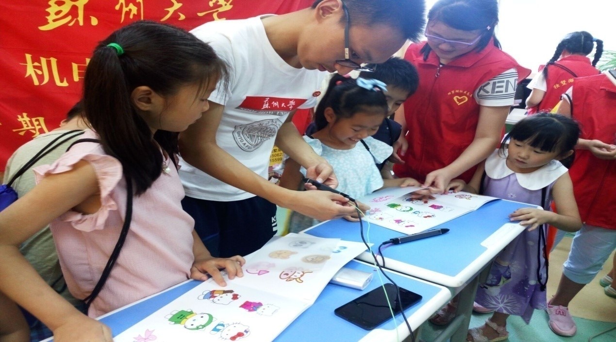 7月12日中午1时许,苏州大学机电工程学院党员服务小分队——“智能制造”社区科普服务团来到苏州市吴中区郭巷塘南新村独墅湖社区,如期开展对小学生的“智能制造”科普知识教育。
