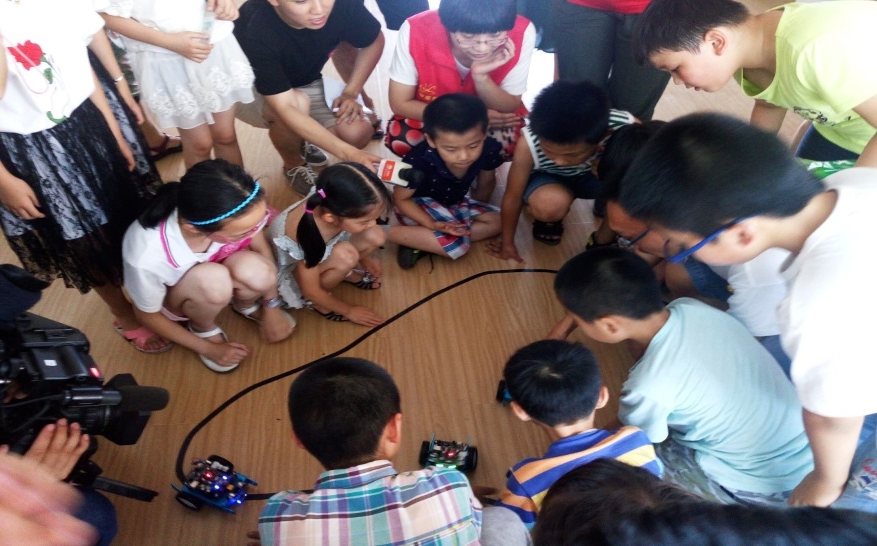 本次活动的地点位于阳澄湖畔的社区服务中心,刚过中午,顶着炎炎烈日,小分队的成员驱车二十多公里终于到达了任务点,一路上团队成员欣赏沿途的美景,看了阳澄湖的迤逦风光,感受了苏州相城区的独特魅力,一时许正式到达场地之后,便开始了紧张的准备活动,布置场地,调试设备,试放幻灯片,当一切准备就绪,小朋友也陆续来到我们的活动场地。小朋友一进屋对我们展示的东西都充满了好奇,房间内虽然有时难免吵闹,但孩子们的活力和好奇心也充满整个房间,令小分队成员感到能量满满,并下定决心一定要为孩子们开启一场难忘的科学之旅。首先,小分队的刘同学为孩子们做了以“梦想的力量-与机器人零距离”为主题的演讲,内容涵盖先进制造技术,机器人,3D打印,新材料等,通过PPT展示,视频演示等,开拓了孩子们的视野,激活了他们去探索科学知识的大脑,孩子们睁大眼睛,十分认真地听着,也积极回答演讲同学的小问题,所有人都沉浸在知识的海洋里,成功地开启了科学之旅的大门。讲演完毕,小朋友们早已经对自由活动环节充满期待,跃跃欲试,之前他们或许从科技馆或是新闻里知道这些东西,而如今可以真实的体验,折让小朋友都非常开