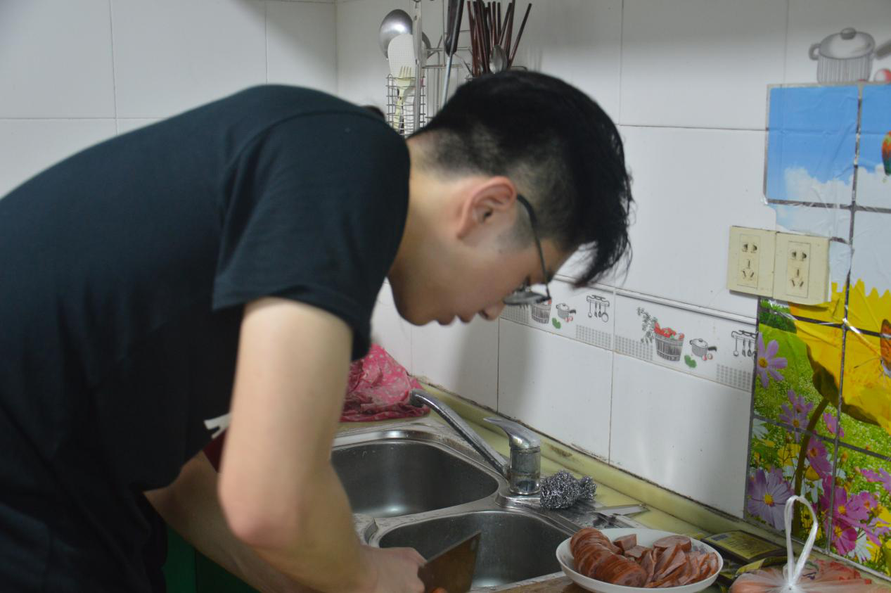 关爱“小候鸟”暑期社会实践团队在为同学们准备晚饭