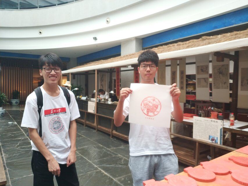 之后,解说员带领我们参观了中国雕版印刷博物馆。通过参观,我们初步了解了刻印的流程。我们还有幸采访到了广陵古籍刻印社的木板雕刻大师沈树华先生。当我们问及大师为何从事这项工作,大师回答是工作分配,可如今已从事这项工作40年了,大师可谓是始于无奈,终于热爱。我们还了解到大师已有门下弟子,也已经开始从事雕刻的工作,他觉得这项技艺仍能继续传承下去。