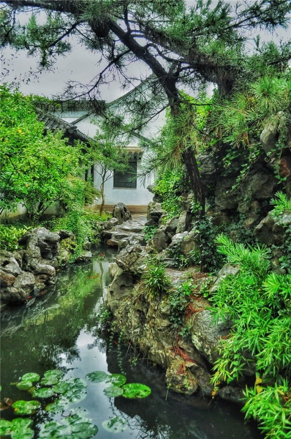 第二个地点是古松园,面积不大,但园中的小瀑布却很有灵气。古松园内还有一棵明代罗汉松,迄今已经有500多年了,姿态优美。此园也是因此树得名。后园还有座“望山楼”,现在是苏绣传人姚建平刺绣艺术馆。