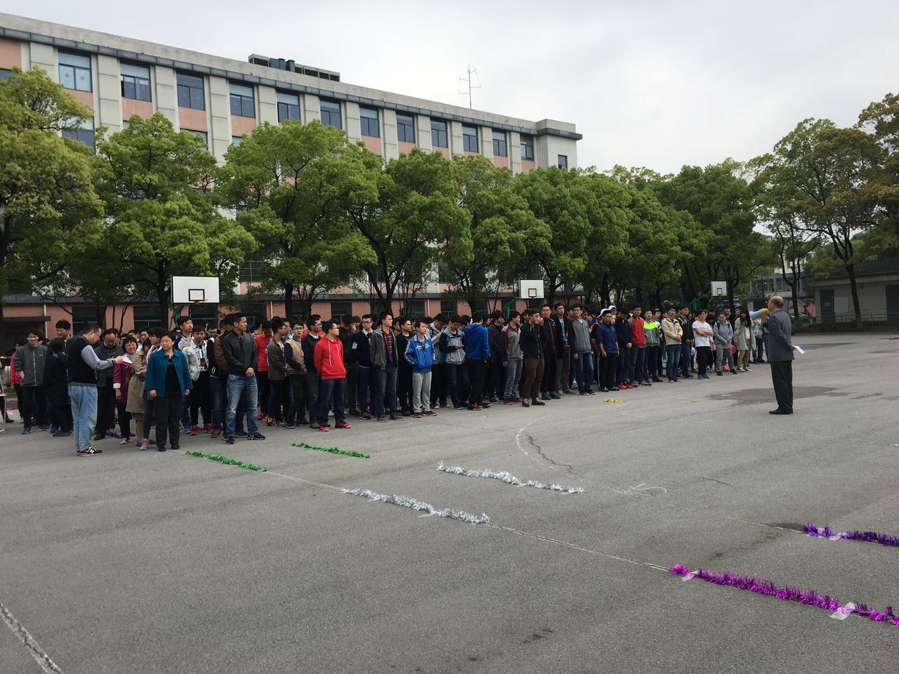 下午1点15分,篮球场上被气球和丝带装扮地焕然一新,机电工程学院全体同学和教职工集聚在北校区篮球场。首先,机电工程学院党委书记刘鲁庆老师发表讲话。刘书记向在场的师生们致以深切的问候,同时向大家阐述了阳光体育运动的深远意义,号召广大师生积极参与到体育运动中来,锻炼出强健的体魄,并在运动中收获快乐,以更多的热情和精力投入到学习工作中。最后刘书记在大家热烈的掌声和欢呼中宣布本次趣味运动会开幕。